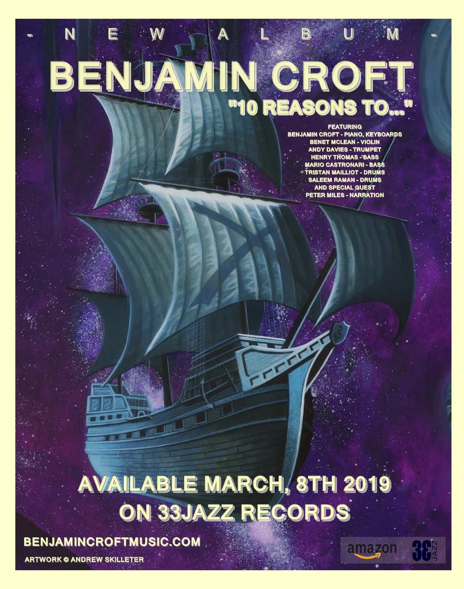 Benjamin Croft (piano/keyboards - including Moog Synthesizer!), Benet Mclean (violin),Andy Davies (trumpet), Henry Thomas (bass) ,Tristan Mailliot (drums)